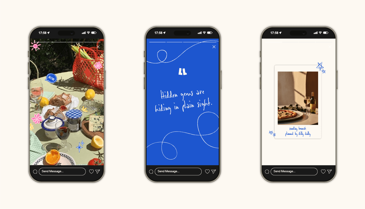 I designed a full social framework to support the brand beyond the app. This included Instagram story templates and creator kits to ensure consistency, recognisability, and flexibility across user-generated and branded content.