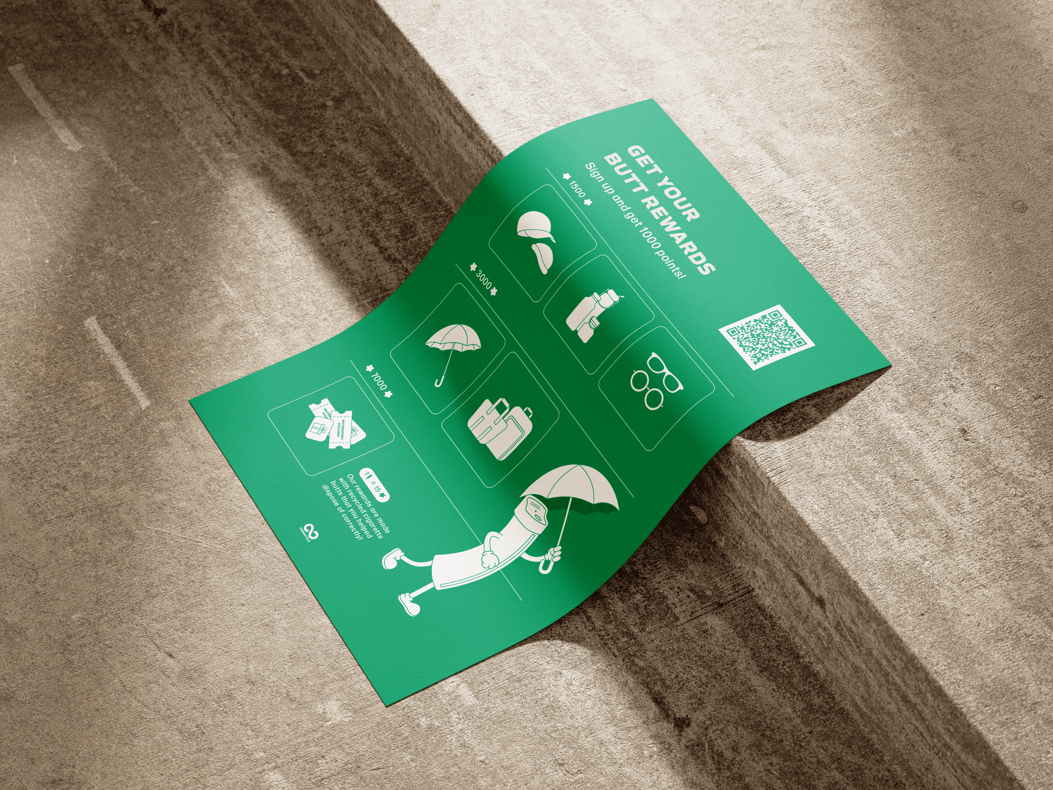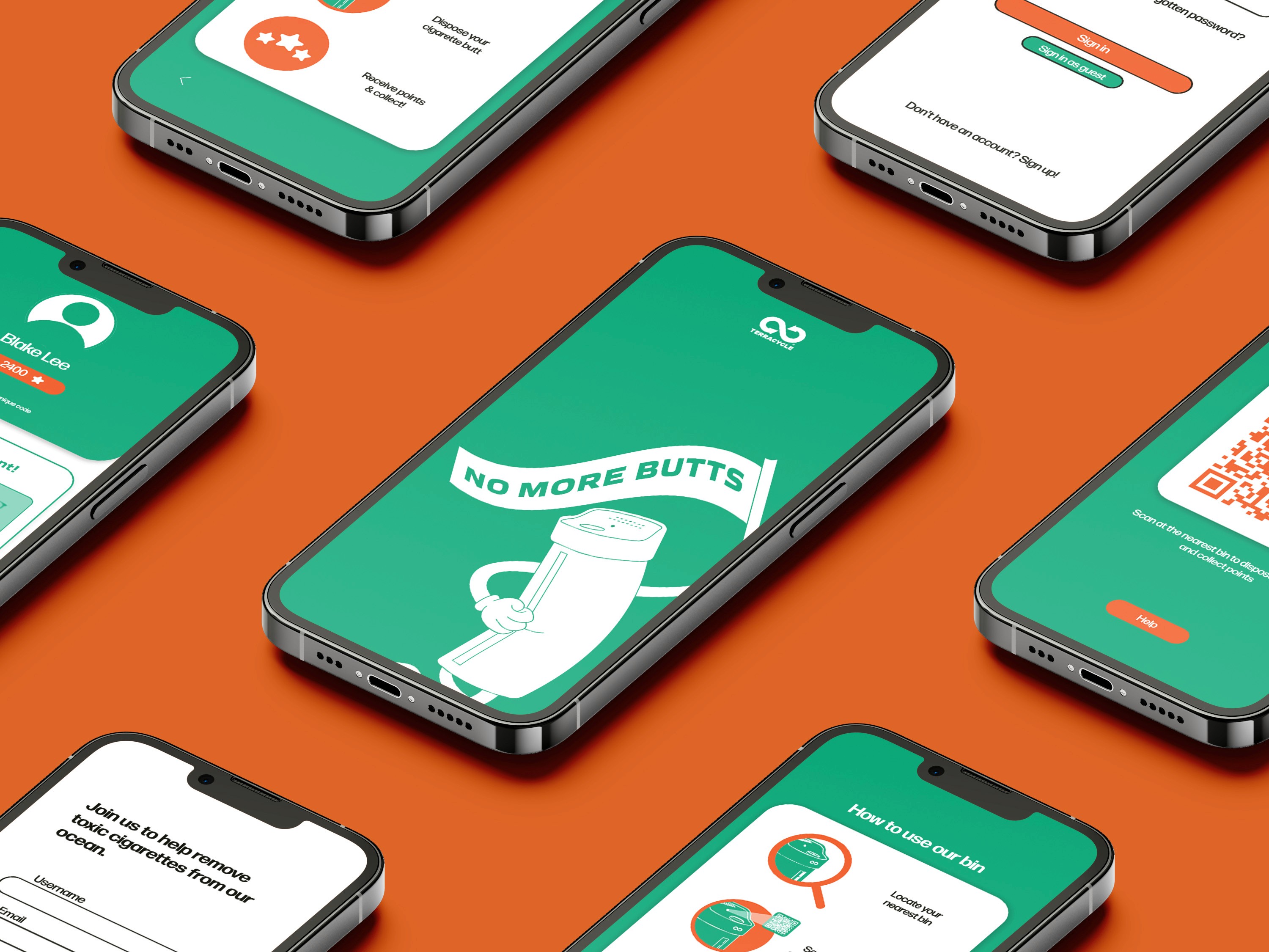 No More Butts is a closed-loop system designed to reduce cigarette butt pollution through behavioural design. It combines physical disposal points with a simple digital rewards model to encourage responsible disposal.